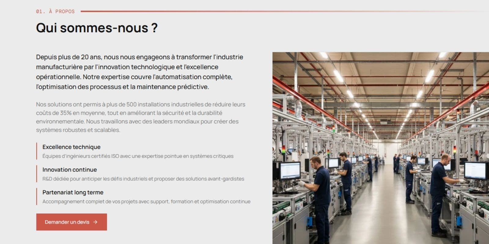 Nous créons des sites au design technique et épuré, pensés pour mettre en valeur votre savoir-faire industriel et renforcer votre image de marque.